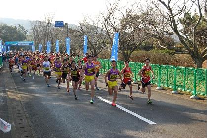ハーフ男子1時間08分44秒、女子1時間22分34秒、5km男子17分15秒、女子21分59秒、3km男子10分12秒、女子11分07秒