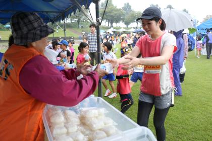 ゴールした方全員に、新米コシヒカリのおにぎりと笹団子、スポーツドリンクを差し上げます。