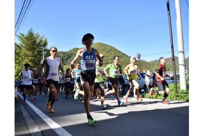 標高800mの山間部。ハーフ:大自然に囲まれたアップダウンがあるコース その他:行きは緩やかな上り、帰りは緩やかな下り