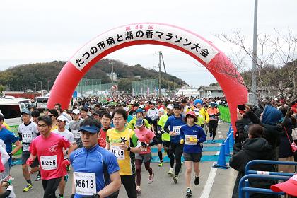 兵庫県内唯一となる国道250号を往復10kmに渡って完全通行止めにし、梅と潮の香りがただよう新春の瀬戸内海の海岸線を走ります。