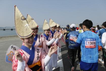 四国三郎「吉野川」の清流を眼下に、万葉集にも詠われた「眉山」を望みながら走る大会です。 コースはフラットで走りやすく、競技時間はたっぷり7時間を設けているため、 マラソン初挑戦の方もおすすめです。とくしまマラソンスタッフ一同、自慢のおもてなしで歓迎し、徳島の魅力をお届けします!