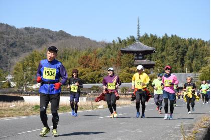 世界遺産の法隆寺・法起寺や法輪寺、中宮寺、史跡藤ノ木古墳などの歴史文化遺産が満載で、古都斑鳩の歴史的街並みを存分に味わえるコースが魅力です。世界陸上パリ大会女子マラソン銅メダリストの千葉真子さん、大阪芸術大学女子駅伝部のみなさんが参加し、大会を盛り上げます。