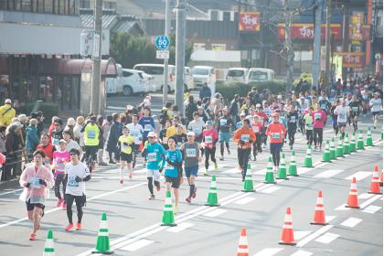 ※2人1組でタスキをつないで42.195kmを走ります(第1走者 約20.4km/第2走者 約21.8km)。