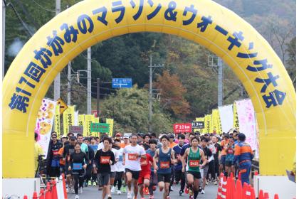 「かがみのマラソン大会」は合併前から37年目となり、奥津湖(苫田ダム)の湖畔を走る景色も楽しめるマラソン大会です。運動が苦手な方もウォーキング部門が楽しめます。