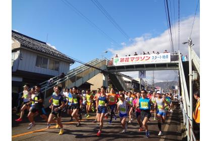 誰でも楽しんで走れるチャレンジの部(2km)が好評です。菊花の香りや市街地、のどかな田園風景を楽しみながら走りましょう。