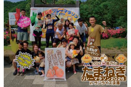 今年で第13回大会となります♪玉ねぎリレーマラソン!名物「玉ねぎエイド」やりますよ~!!とるのも良し!記録・順位を競うのも良し!楽しみ方は自由です~!淡路島でチームの絆、強めませんか!? 最新の記録計測で順位、記録も計測します♪今、大ブームの淡路島で大自然を肌で感じて楽しい1日をお過ごしください~